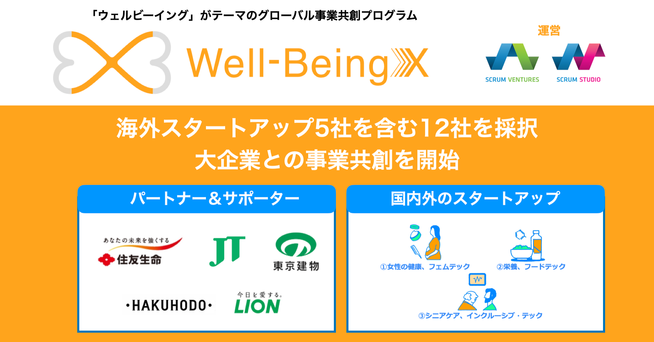 『Well-BeingX』は、業種を超えた企業と世界中の優れたスタートアップとともに「多様なウェルビーイングの実現」に向けて事業共創する、グローバル事業共創プログラムです。