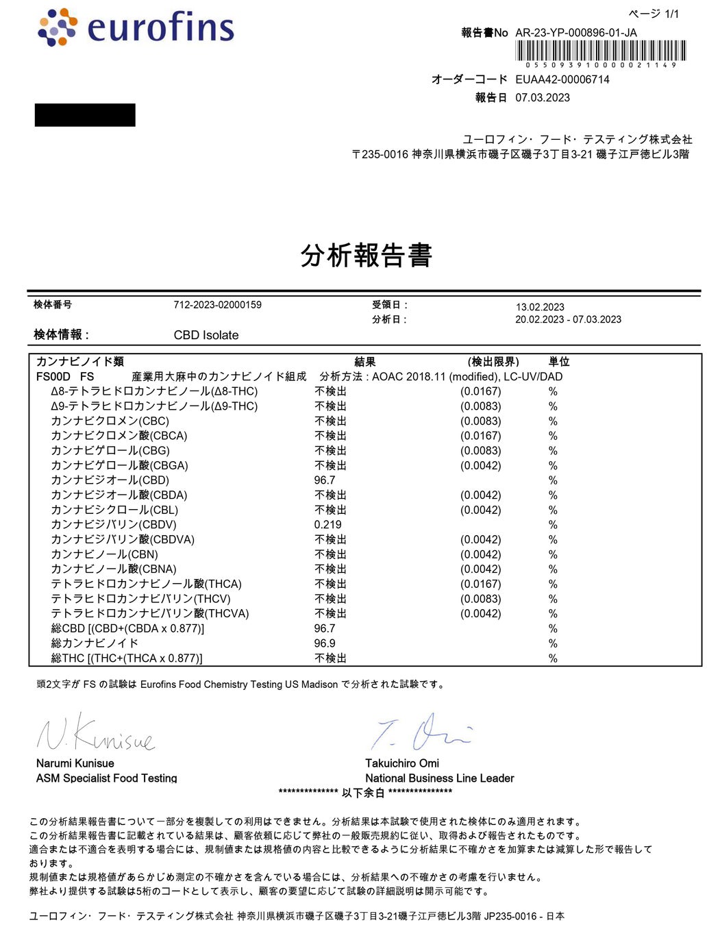 CBD原料の検査機関は第三者機関であり、ISO17025を取得しているユーロフィン・フード・テスティング株式会社が行っています。