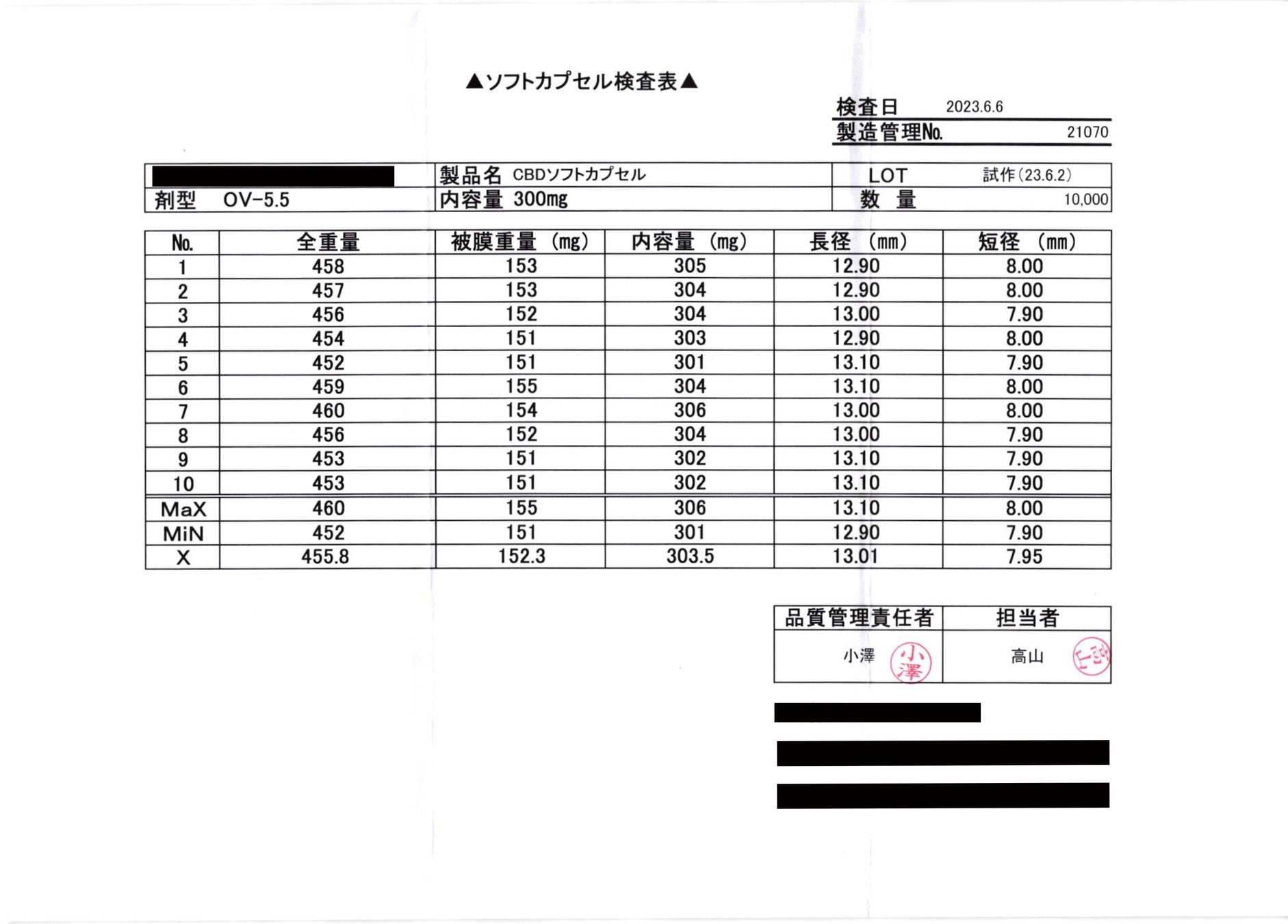 そのため、CBDがカプセル内で再結晶してしまうことがありますが品質には問題ございません。
