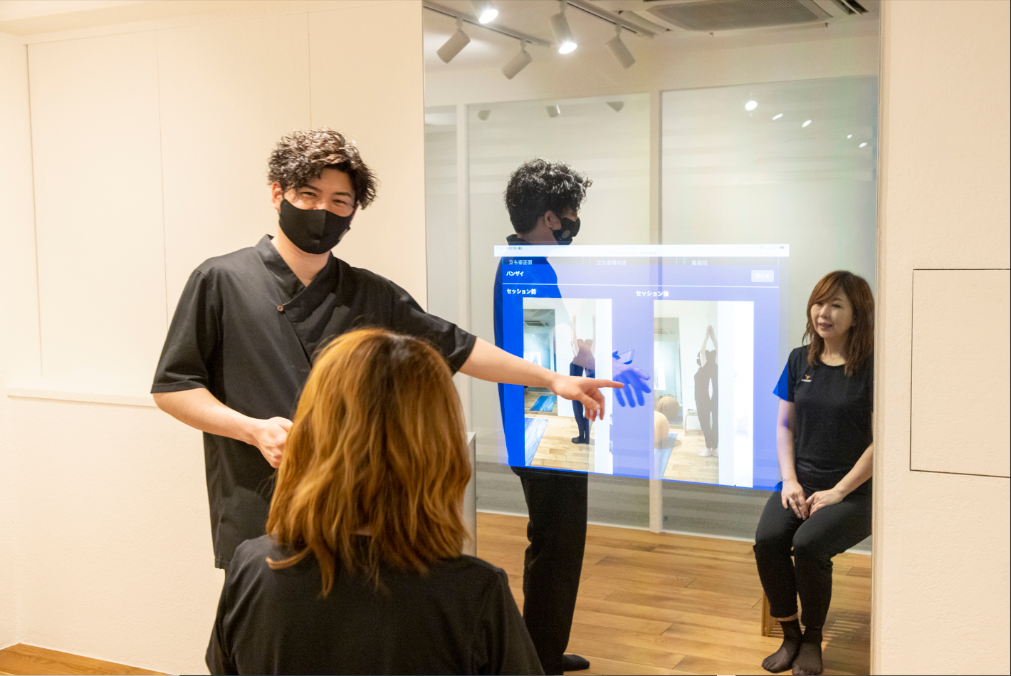 自分でも知らなかった歪みやクセを発見できる新感覚ミラーディスプレイなどを使った