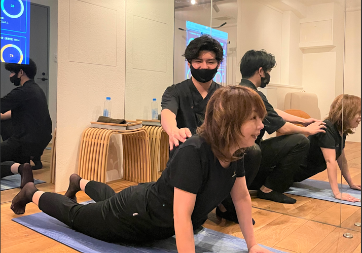 理学療法士が独自開発した日本で唯一のプログラムで、身体の本質的な課題を数値ベースで見える化。最新技術のミラーディスプレイも導入し、施術前後で自分の身体がどう変わっていったかも共有します。理想的な数値を目指すべく、一人一人に最適なアプローチを行います。