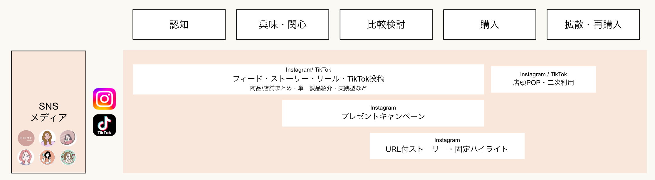 EMMEや編集部員のアカウントでは商品の認知や想起の拡大と理解促進を図ることを得意としています。