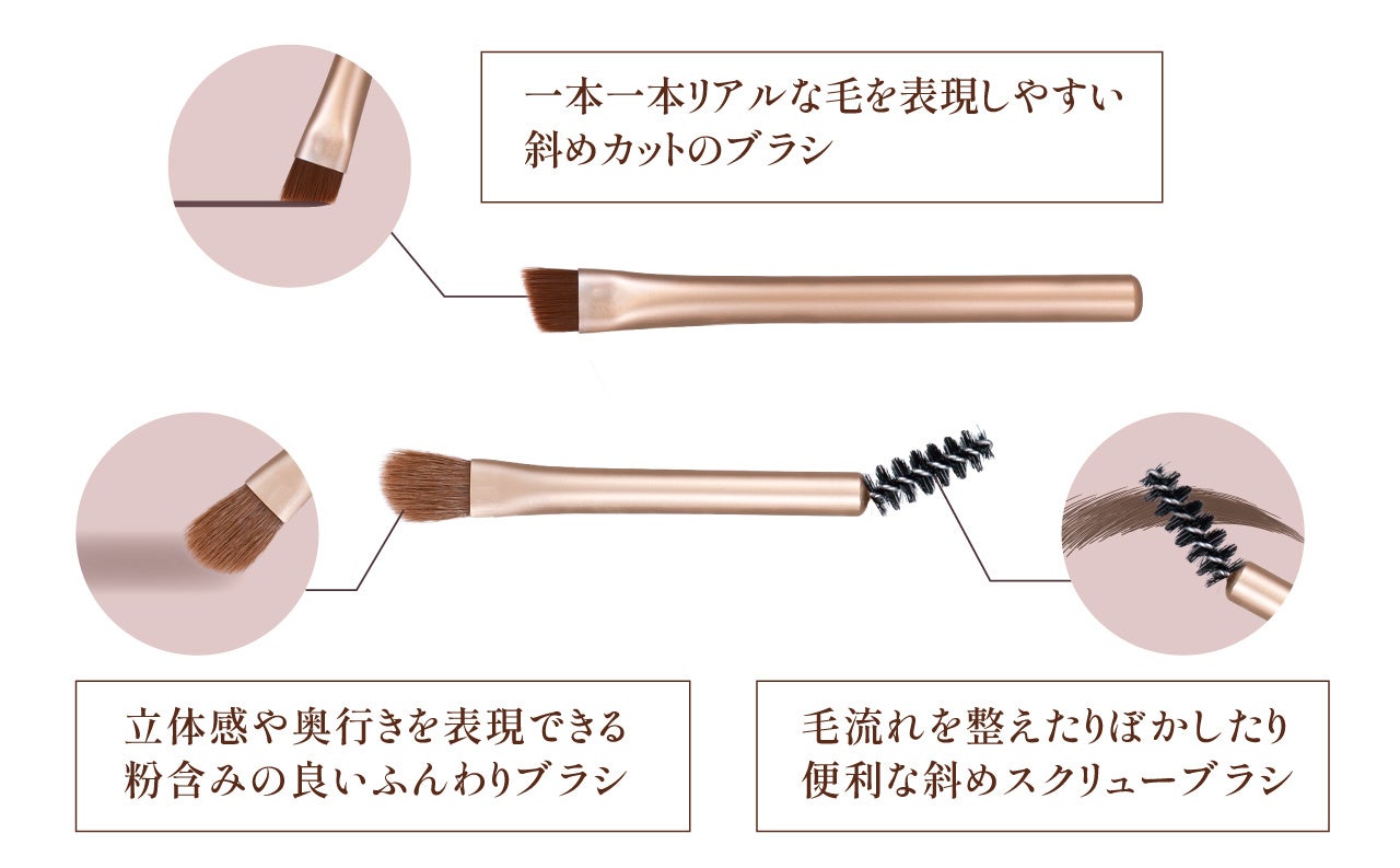 眉の毛流れを整えたり、色をぼかすなど、眉を自然な印象に仕上げるブラシ