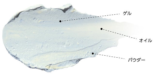 オイル、パウダー、ゲルを掛け合わせた半固形のふわ生バーム剤形。オイルは塗布した瞬間じゅわっと溶けだし、軽やかに伸びて薄膜を形成します。