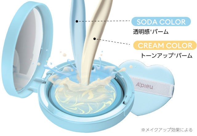 ソーダカラーの“透明感*¹バーム”とクリームカラーの“トーンアップ*¹バーム”が溶け合い、トーンアップ*¹とカラーコントロールの効果を発揮します。韓国アイドルのような儚げで透明感*¹溢れる仕上がりが叶います。