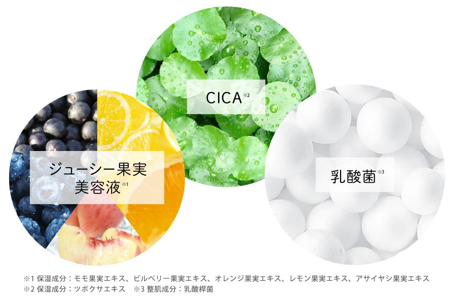 *²保湿成分:モモ果実エキス、ビルベリー果実エキス、オレンジ果実エキス、レモン果実エキス、アサイヤシ果実エキス
