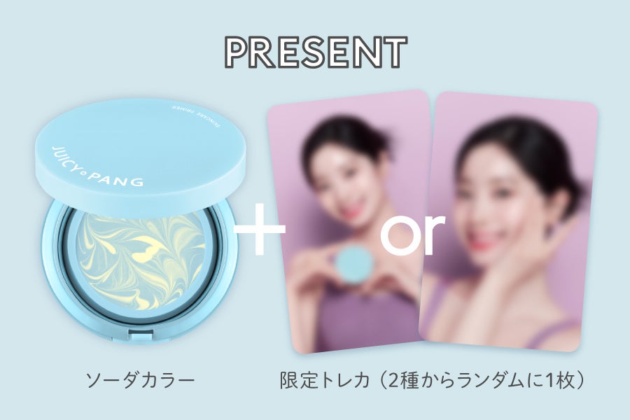 ミシャジャパン公式オンラインショップでは「アピュー ジューシーパン スキンケアプライマー(ソーダ)」の再販を記念し、TWICE ダヒョンのトレカを数量限定でプレゼントいたします。ソーダカラー1点お買上げごとに、2種からランダムで1枚の贈呈となります。