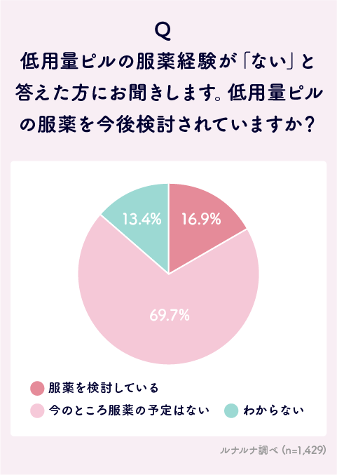 Q. 低用量ピルの服薬経験が「ない」と答えた方にお聞きします。低用量ピルの服薬を今後検討されていますか?