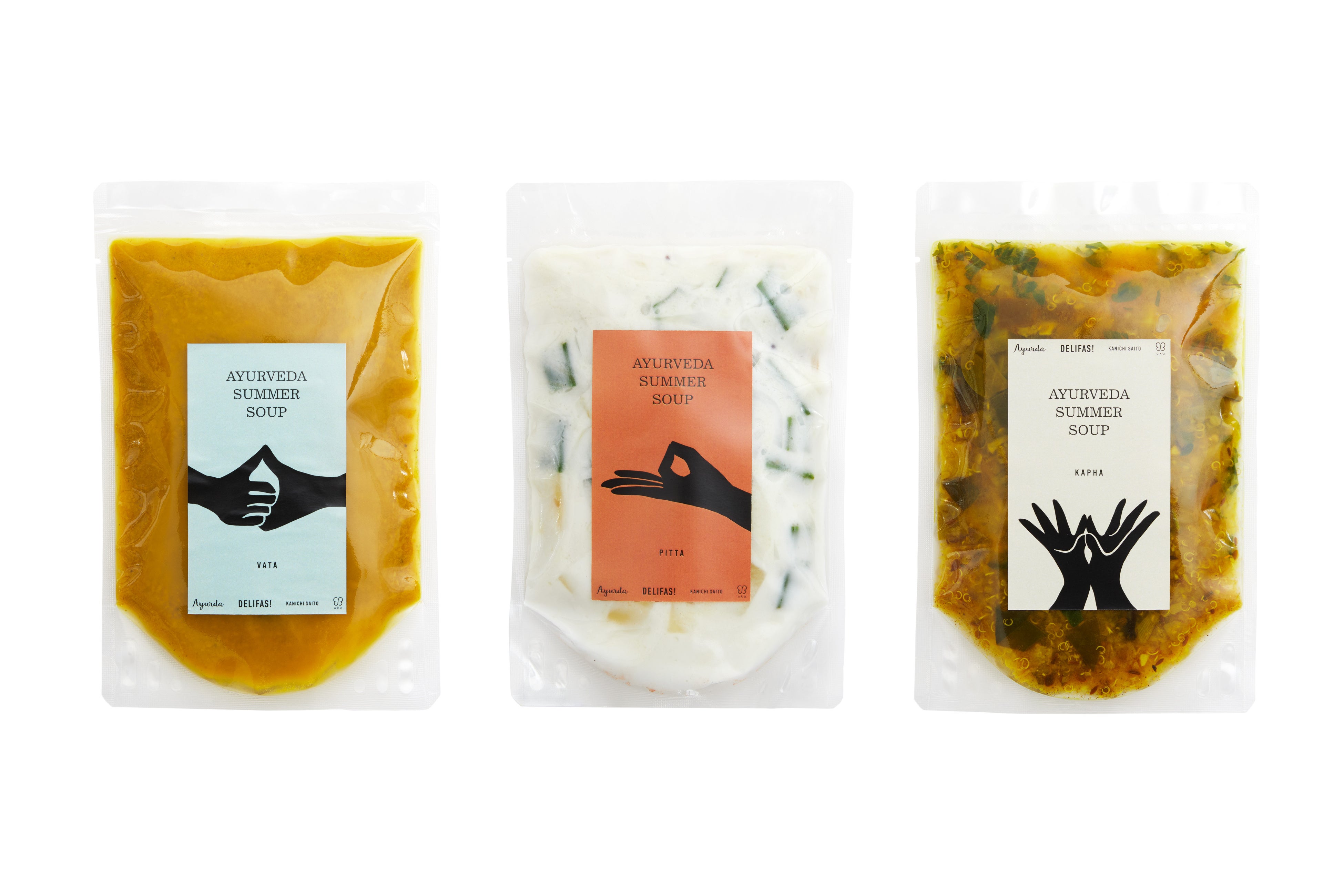 アーユルヴェーダの理論に基づきドーシャ(体質)に応じた3種類のスープを、 Ayurda 、DELIFAS!(デリファス)、ukaの3社で共同制作しました。