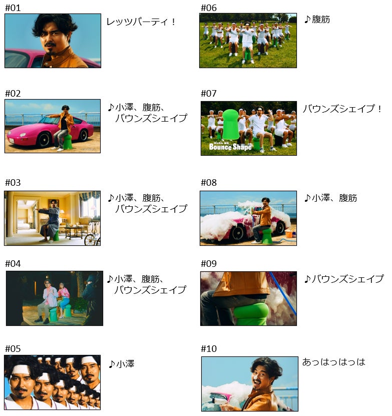 今回のCMでは簡単に「ながら腹筋運動」ができるバウンズシェイプの魅力を伝えるため、小澤征悦さんが様々な場面でバウンズシェイプを使用するシーンがコミカルに描かれています。