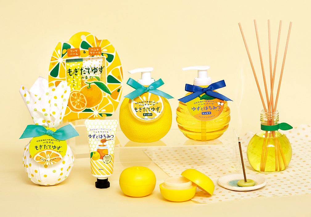 厳しい夏の暑さでバテがちな時に、ほっこりいたわる四国産ゆずの天然精油を配合した「ゆず」シリーズのボディーアイテムやバスアイテムが勢ぞろい。「ハンドソープ」「マルチバーム」「バスボム」「リップ&ハンドケアセット」が数量限定でリニューアル&新登場します。人気の定番バスアイテムの薬用入浴剤、バスパウダー、バスソルトバッグとともに、心なごむゆずの香りでくつろぎの時間を。