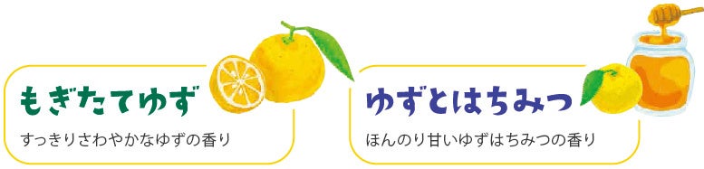 ハンドソープ 左 もぎたてゆず、右 ゆずとはちみつ