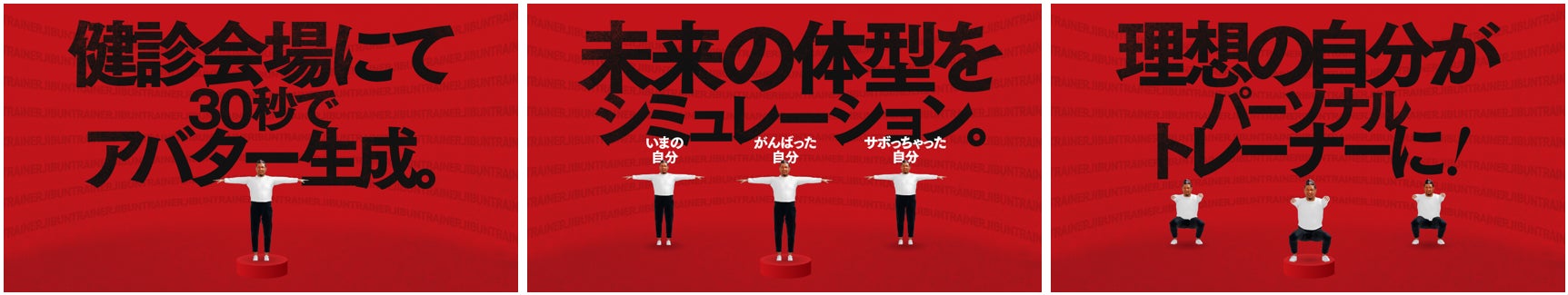 具体的には、博報堂DYホールディングス・博報堂・博報堂DYメディアパートナーズの2023年8月末~行われる定期健康診断において、健診会場に設置された専用筐体で従業員自身の3Dアバターを生成します(希望者のみ)。その後、専用サイト上で、生成された自身のアバターがパーソナルトレーナー「じぶんトレーナー」となり、目指すべき体型を可視化したり、改善に向けたエクササイズ等を教えるなど、社員一人ひとりの健康をサポートしていきます。