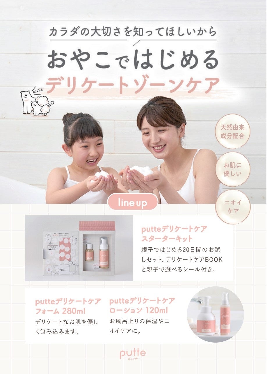 putte(ピュッテ)は自分を大切にするママと、これからの自分を大切にする女の子のためのデリケートケア商品です。