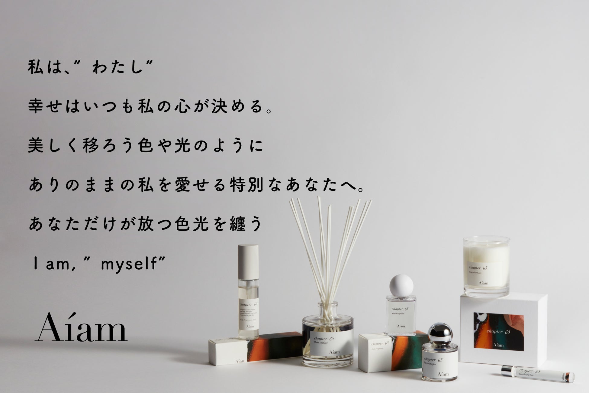 Aíamの中でも代表する「chapterシリーズ」は全6種類の香りからフレグランスをはじめ、ボディ・ヘアケア、ルームフレグランスなど展開。