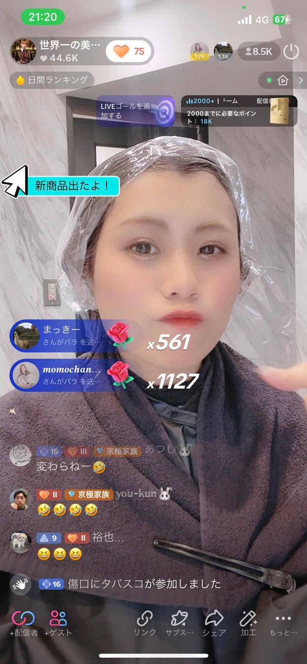 弊社の美容系ライブコマーサーのさえが配信しており、同時接続人数は8,500人と大変好評いただいております。
