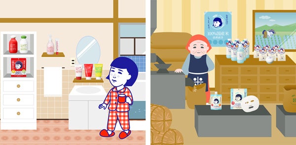 商店街の途中にある撫子ちゃんのおうちには「毛穴撫子 女の子シリーズ」、お米屋さんには人気の「毛穴撫子 お米のマスク」をはじめとした「毛穴撫子 お米のシリーズ」の製品たちが並べられています。気になる製品を見つけたらクリック!その製品の詳しい情報をご覧いただけます。