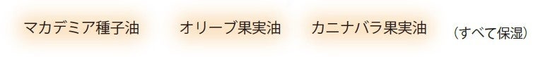 ※ マカデミア種子油、オリーブ果実油、カニナバラ果実油(すべて保湿)
