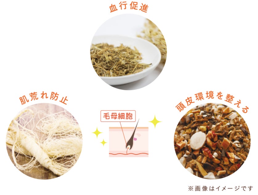 センブリ抽出液、ニンジン抽出液、グリチルリチン酸ジカリウムの3種類の有効成分が今ある髪を育て、抜け毛を防いでいく。3つの医薬部外品の育毛剤有効成分は、育毛、薄毛、かゆみ、脱毛の予防、毛生促進、発毛促進、ふけ、病後の脱毛、養毛への効能として配合している。