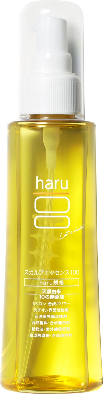 10年目の新たな一歩として、年齢を重ねるにつれ髪から頭皮にヘア悩みが変化していくことにスカルプケアのプロとして寄り添える100%天然由来のエイジングケア(※2)商品、日本初(※3)の振る育毛剤「スカルプエッセンス100」(医薬部外品)を9月4日よりharu公式オンラインショップにて発売を開始する。