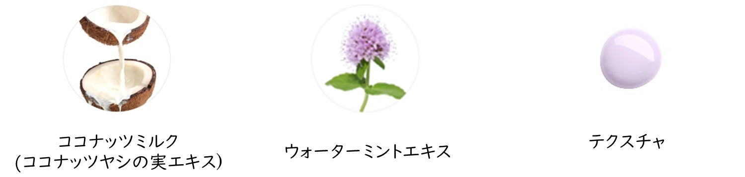 水分たっぷりのココナッツとクリーンウォーターミント成分はなめらかな肌と赤み肌にうるおいを与えます。