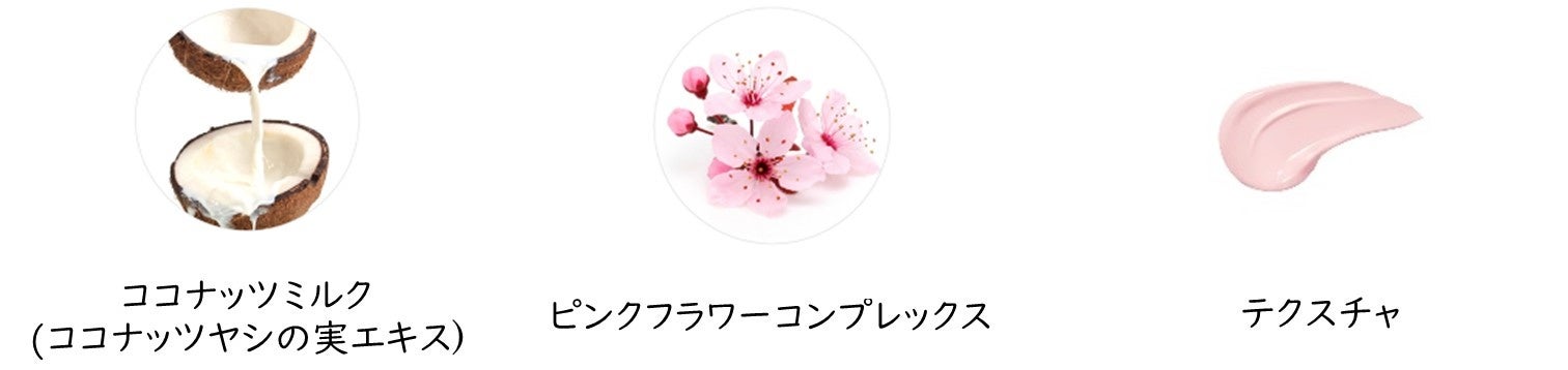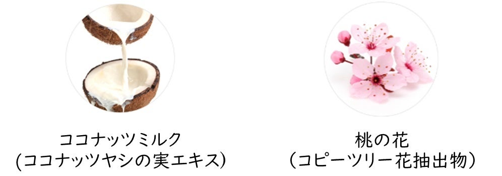 水分たっぷりのココナッツとピンクフラワーコンプレックスはなめらかな肌と明るい活力*¹を与えます。*²