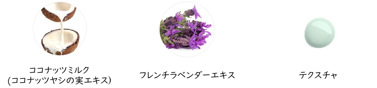 水分たっぷりのココナッツとクリーンラベンダー成分がは肌のキメとくすみが気になる肌にうるおいを与えます。*²