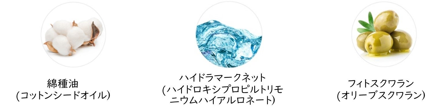 肌に密着する水分磁石成分と柔らかな綿種油がソフトベルベットテクスチャーを演出。*²