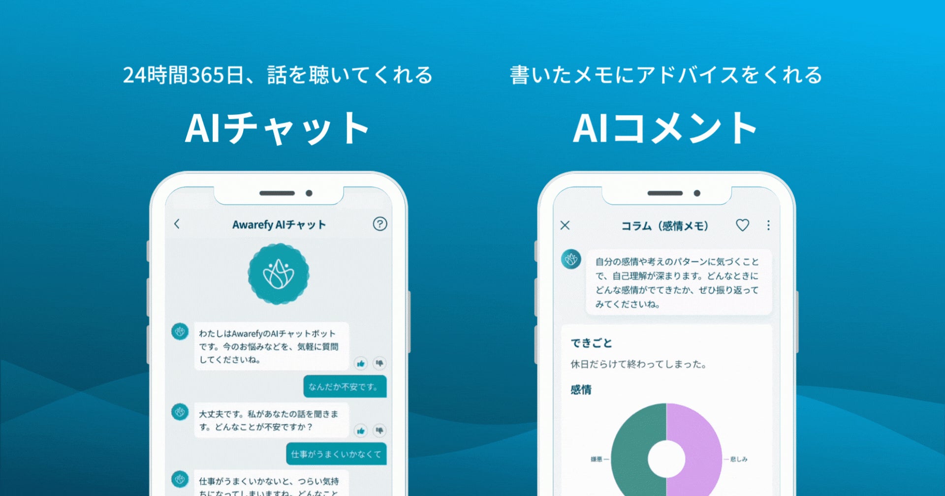 参考:あなたの話をいつでもどこでも傾聴するAwarefy AI チャットが搭載されました