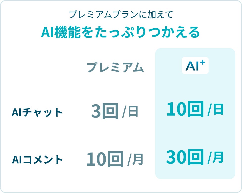そしてこの度、AI機能をもっとたくさん利用したいというご要望を受け、AI⁺プラン(AIプラスプラン)をリリースいたしました。