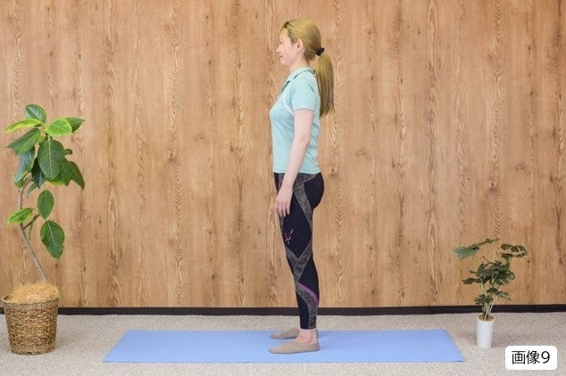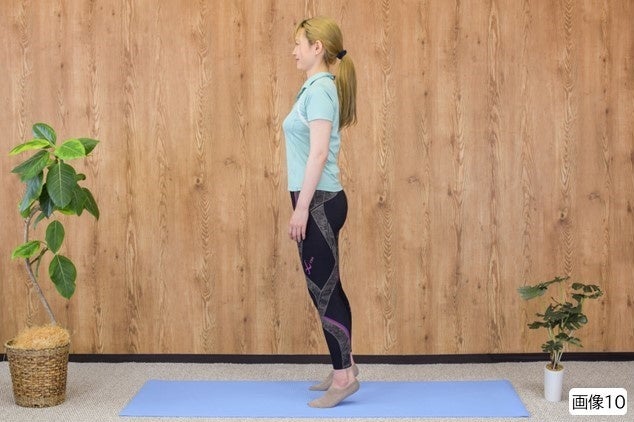 ②かかとをゆっくり上げて、ゆっくり下すエクササイズを30回行います。(画像10参照)