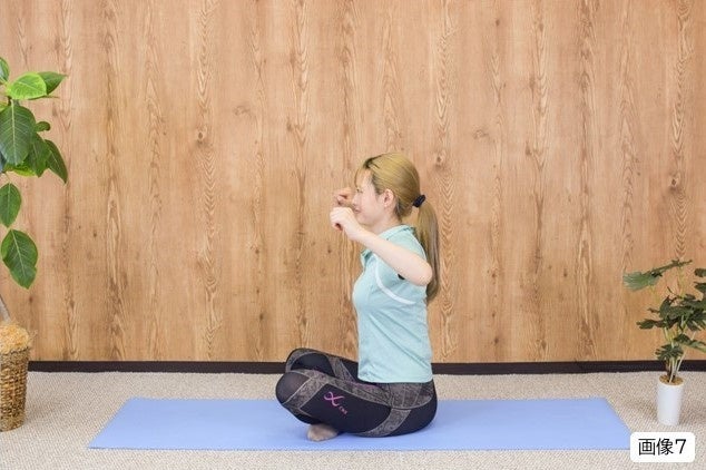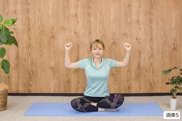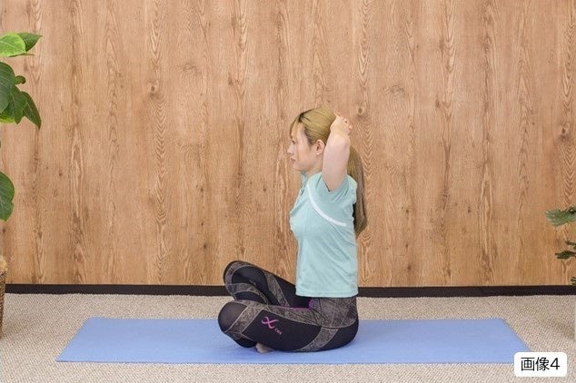 ②脇の部分の角度が直角になるように腕を上げ、肘も直角に曲げます。(画像5参照)