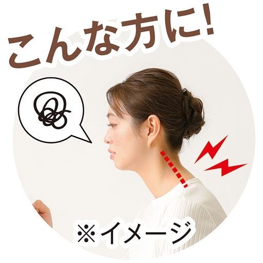 スマホの使用やデスクワークにより、ストレートネックや猫背になりがちな現代。「Dr.PROグイッと伸ばす首かるさん」を装着することで、頭の位置が整い、正しい姿勢を意識することができます。頭の重さを支えることで首への負担が軽減され、ストレートネック対策としてもおすすめです。