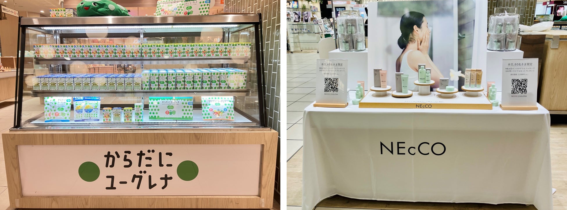 また、ユーグレナ社の主力食品ブランド「からだにユーグレナ」の商品販売や試飲体験、バイオナチュラル・スキンケアブランド「NEcCO」のインスタグラムフォローキャンペーンを実施します。