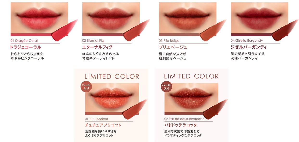 大人の唇に溶け込み、絶妙な抜け感を演出する粘膜系のカラーラインナップ! ~全6色~