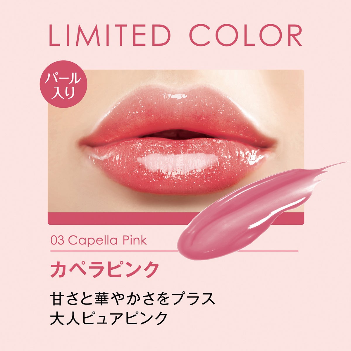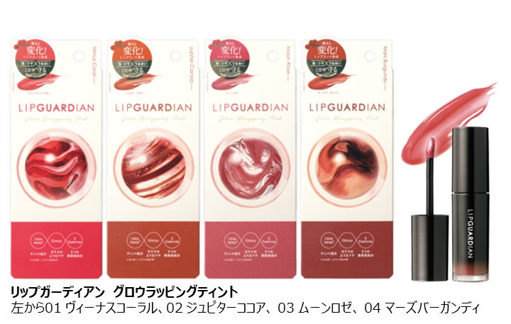 ティッシュオフなしでもカップにつきにくい、進化系※1 ティントグロス「リップガーディアン グロウラッピングティント」。唇の上でトップコート層を形成し、色・ツヤ・うるおいを1日中※2 守り、美しい仕上がりが続くとご好評いただいております。今回の限定色は、唇きらめくパール入り、甘さと華やかさのある大人ピュアピンク。ガラスのようなツヤ仕上がりの透け感・高発色をぜひお楽しみください。