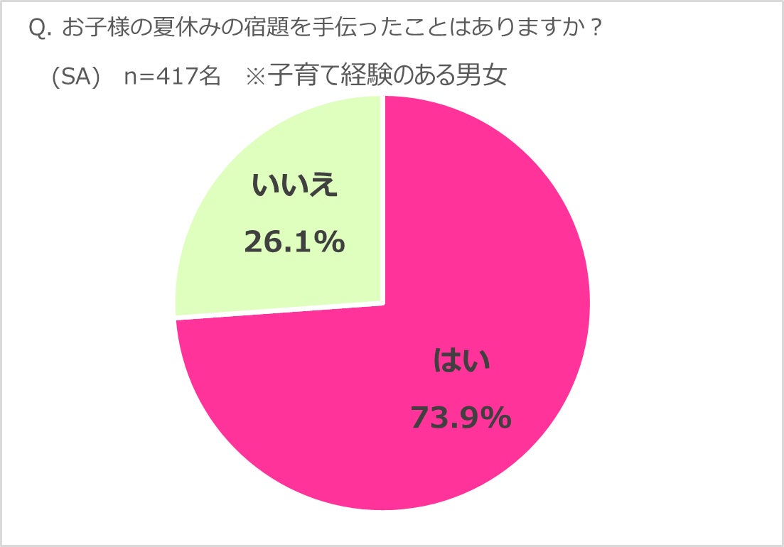 現在小学生の子どもを持つ親の9割以上が夏休みの宿題を手伝ったことがあると回答!