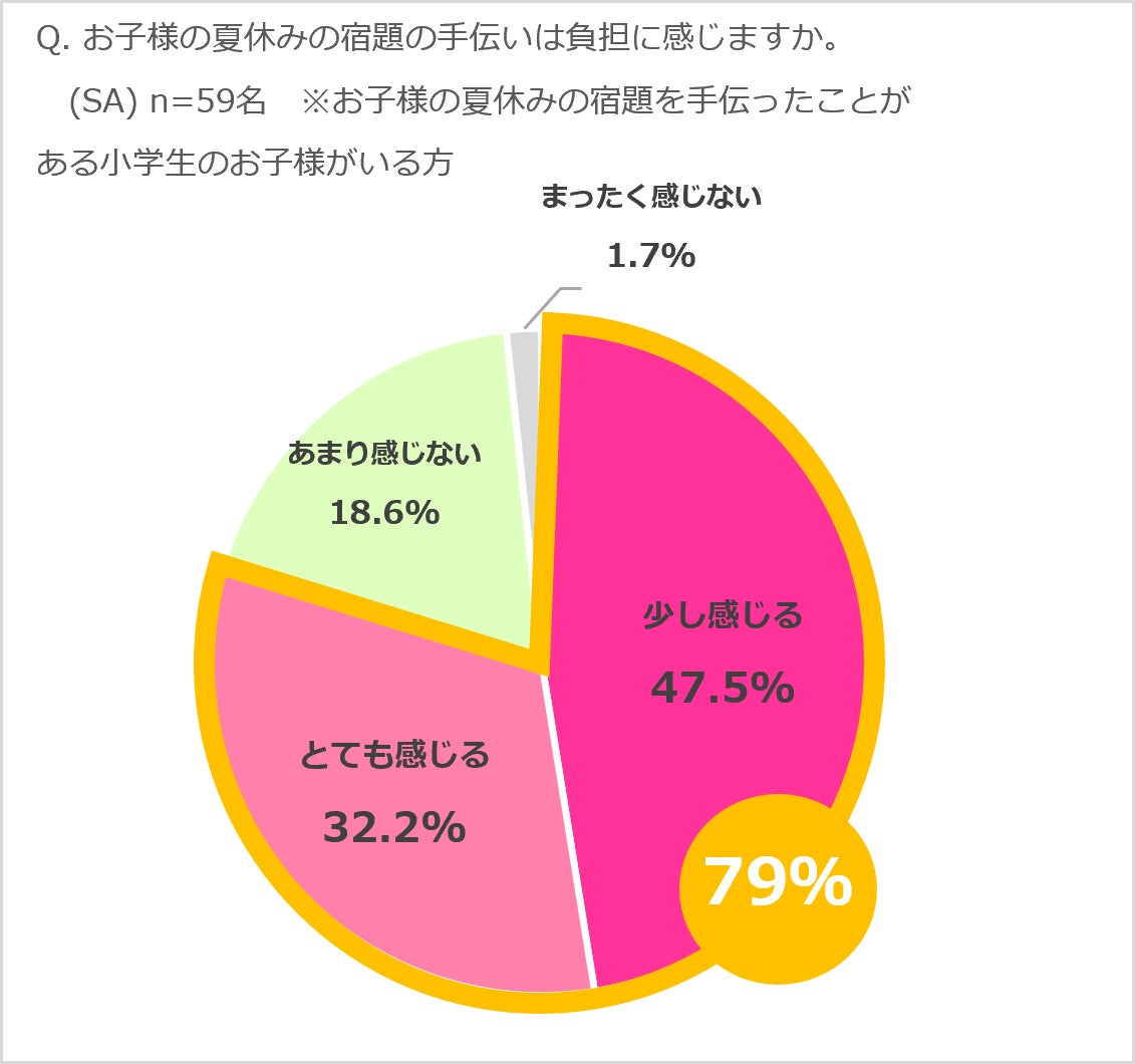 ■夏休みの宿題の手伝いを負担と感じている小学生の子どもの親は約8割であり、
