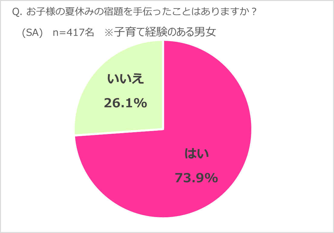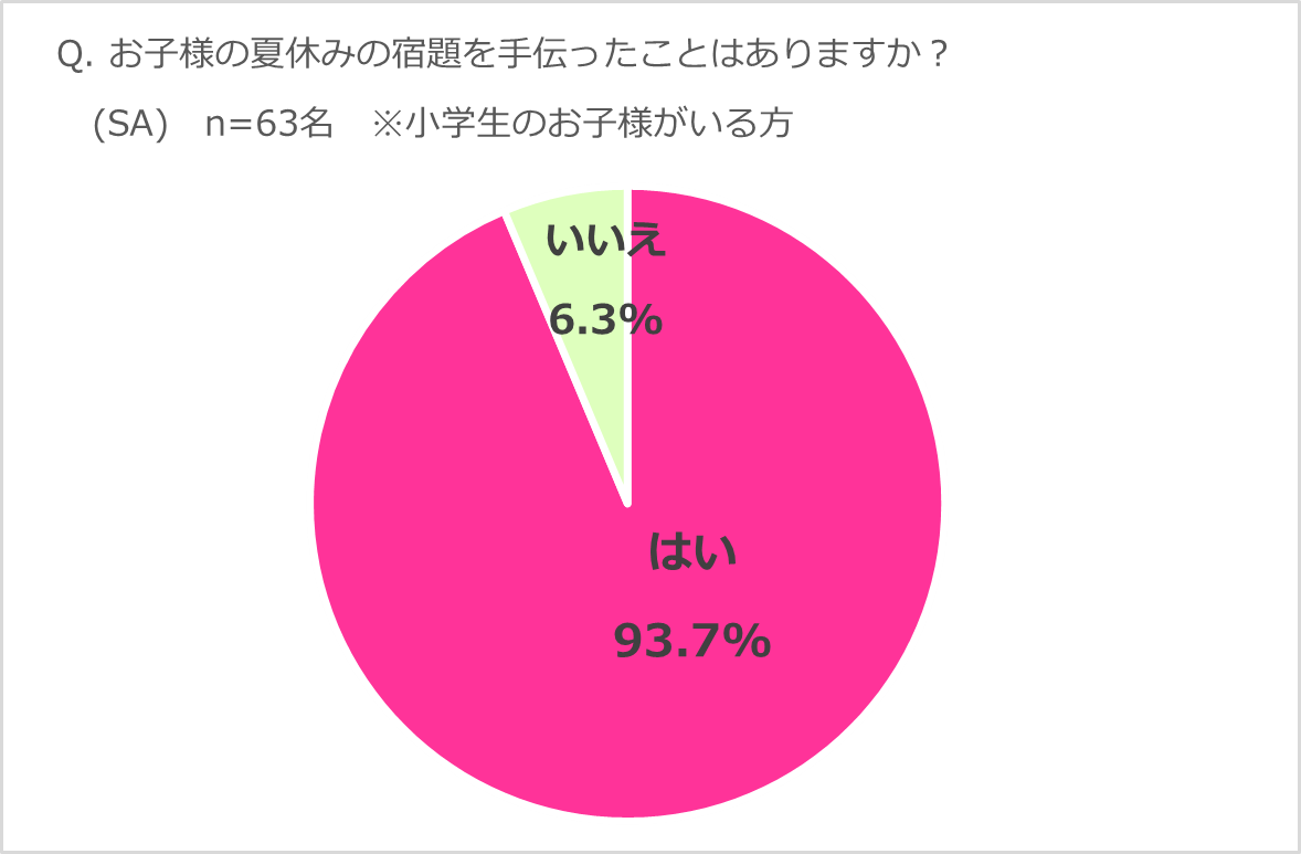 現在小学生の子どもを持つ親の9割以上が夏休みの宿題を手伝ったことがあると回答!