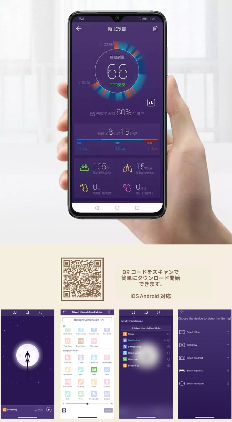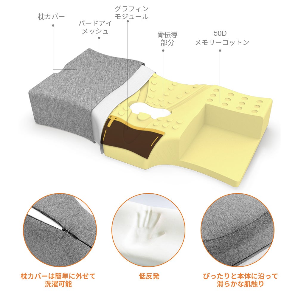 高品質の低反発枕に最先端のテクノロジーを搭載したスマートな枕です。