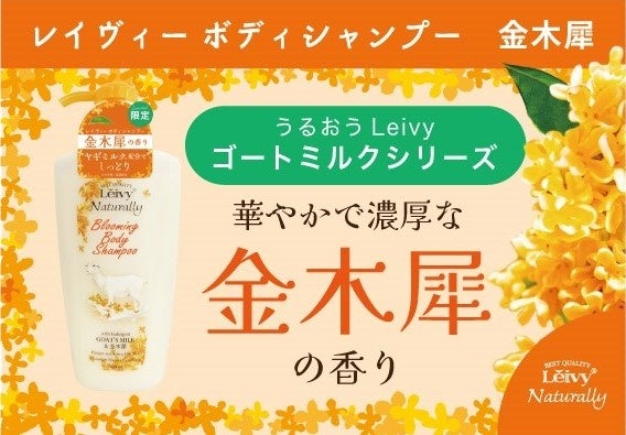 アロマテラピーにも使用される金木犀は、秋の訪れを感じさせる人気の香りです。レイヴィーは香水のような複雑で奥行きのある良い香りを特徴とするボディケア用品を販売しており、香りが好きという理由でリピーターが多いブランドです。近年は、レイヴィーファンの方から『金木犀の香りを発売してほしい!』とお問い合わせいただいておりました。ファン待望の「レイヴィー ボディシャンプー 金木犀」は本格的な甘い金木犀の香りを再現するために香料として「モクセイ花オイル」を配合。