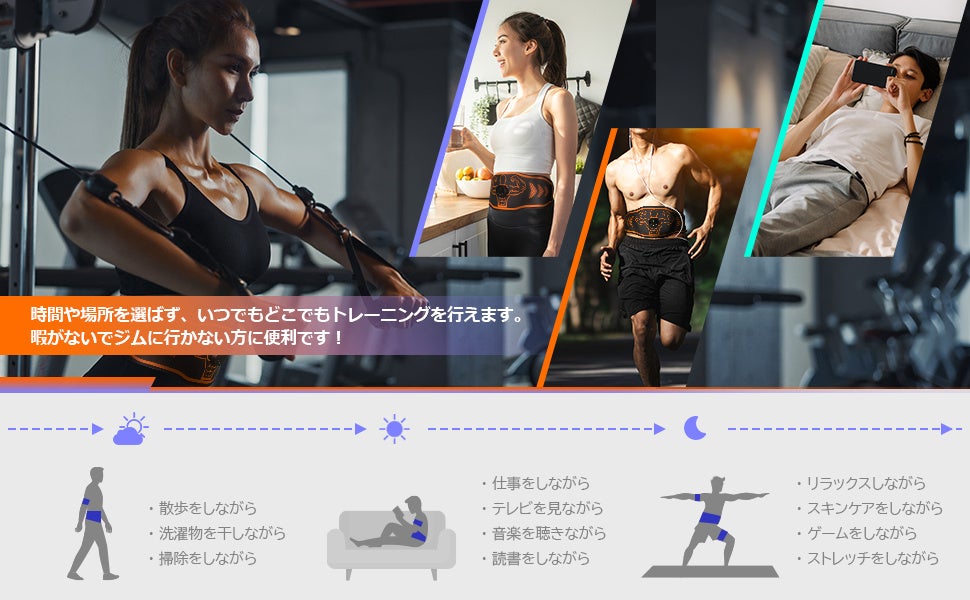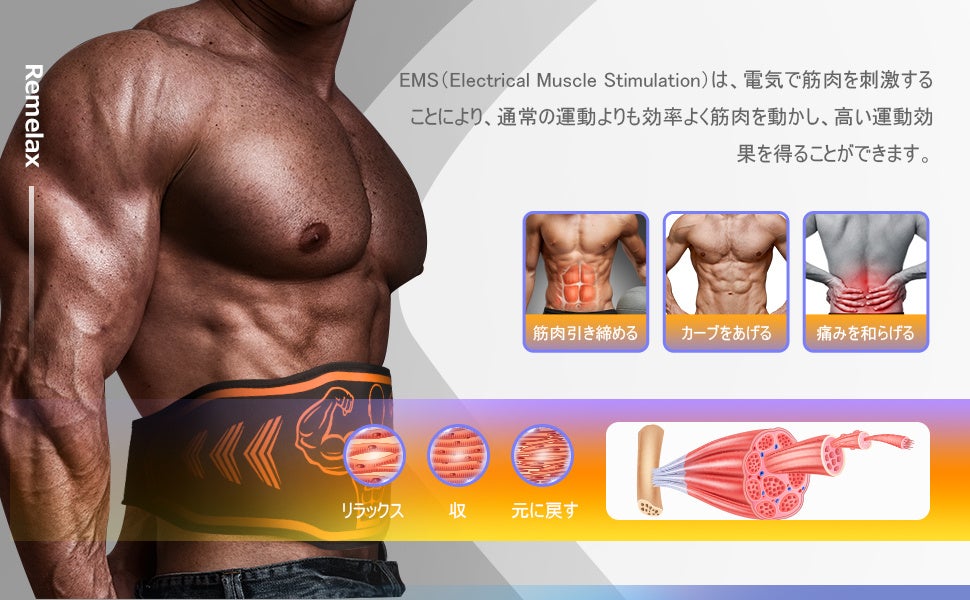 ■ 筋肉を集中的に刺激し、お腹周りの筋力トレーニングをサポートします。 EMS腹筋ベルトは、体の外側から電気を与え、意識しなくても筋肉を動かすことが可能に。