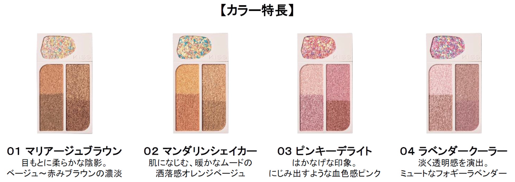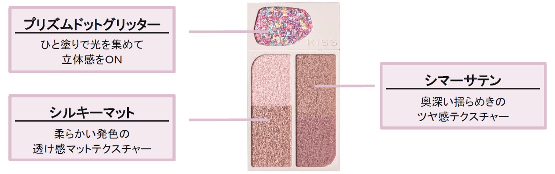 KiSSから、大粒グリッターと4色のカラーがセットされたアイカラーパレットが新登場。