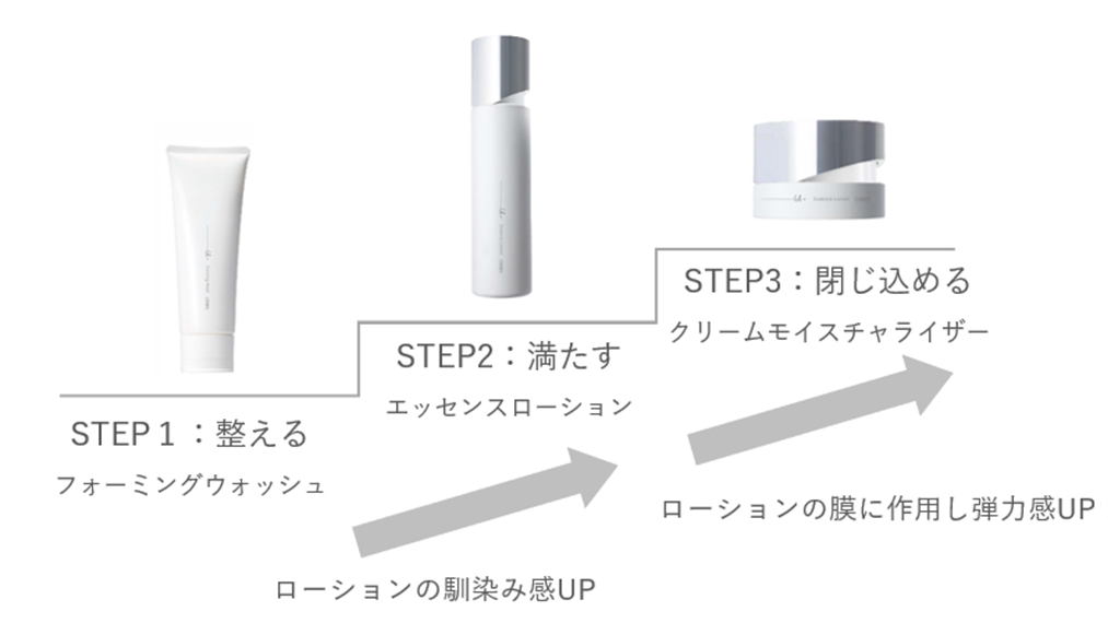 3.【NEW】3ステップで上向きのハリと透明感を。効果的なシナジー設計