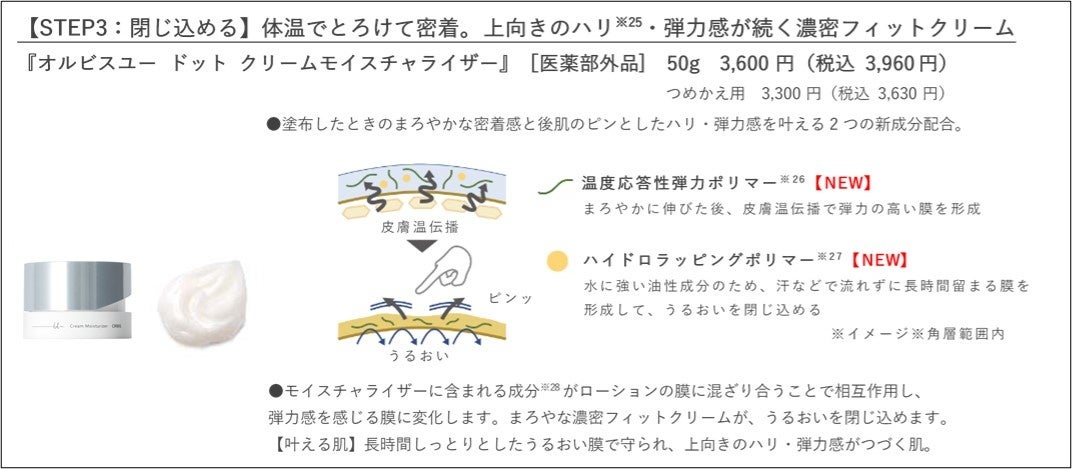 ■ 販売名:『オルビスユー ドット クリームモイスチャライザー』[医薬部外品]■ 価格:3,600円(税込3,960円)/つめかえ用 3,300円(税込 3,630円)