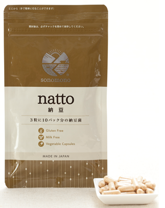 そのもの納豆は、納豆の豊富な栄養と生きた納豆菌を効率よく摂れる納豆粉末100%の完全無添加サプリメントです。原料となる大豆と納豆菌は、佐賀県江北町有機研究会が栽培する大豆と当社独自の「そのもの納豆菌」を厳選しました。2022年9月、納豆カプセル摂取による腸内細菌叢の変動及び健康効果への影響確認試験の結果をまとめた論文が国際学術誌「Nutrients」に掲載されました。
