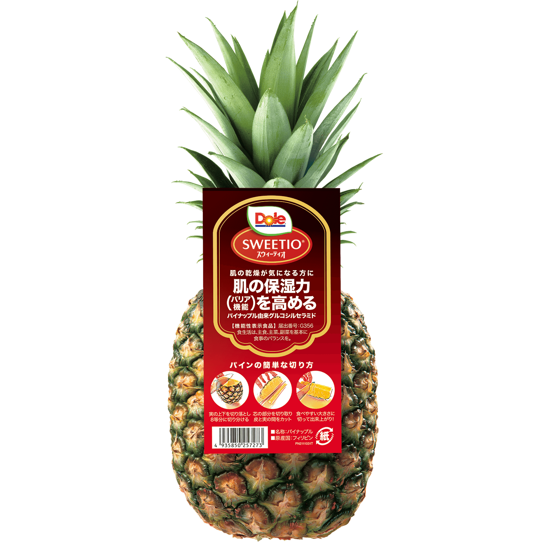 スウィーティオパイナップルは、パイナップルで”初”の「機能性表示食品」、さらに、果実で”初”となる肌の機能性においての「機能性表示食品」の届出を完了した商品です。「パイナップル由来グルコシルセラミド」で肌の調子を整えて頂きたいという想いで、「パイナップルでプル活!」キャンペーンを展開しております。現在、第2回キャンペーンを8/31まで開催しております!詳細はHPをご確認ください。