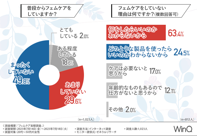 そこで今回、『Vippy』(https://vippy-jpn.com/vippy/)を手掛ける株式会社WinQ(http://winq-work.com/index.html)は、20代~50代の女性を対象に、「フェムケア実態調査」を実施しました。