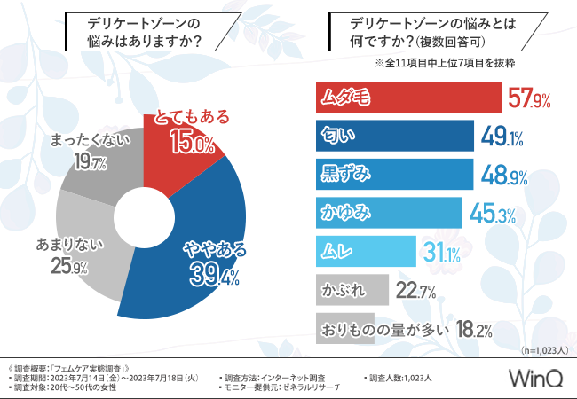 今回の調査で、半数以上の女性がデリケートゾーンに悩みを持っていることが明らかになりました。