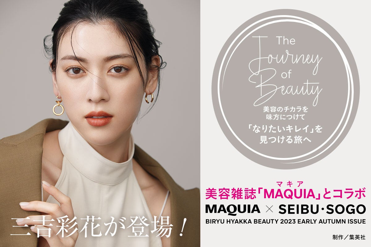 そごう・西武ではコスメ情報メディア「美流百華」にて、シーズンテーマに合わせて様々なビューティー情報をお届けしています。秋号である8・9・10月は『The Journey of Beauty 美容のチカラを味方につけて 「なりたいキレイ」を見つける旅へ!』をテーマに特集。マスクを外し外出する機会も増える中、ポイントメイクの売上も前年比約115%と3月以降5ケ月連続前年比を上回り好調で、中でもリップアイテムは前年比130%超えて伸長しています。メイクアップを本格的に楽しめるようになった今、今年らしい旬の新作メイクアイテムや長期マスク生活や過酷な夏を過ごした肌へのスキンケアアイテムなど、「なりたいキレイ」のヒントになるビューティー情報を提案いたします。さらにWEBでは毎月のテーマに合わせ集英社の人気美容雑誌「MAQUIA(マキア)」とコラボレーションした特集記事や編集者のエディターコラムはじめ、当社コスメバイヤーおすすめアイテム情報など今取り入れたいビューティー情報もタイムリーに配信いたします。